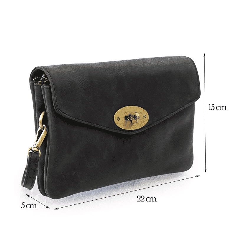 Choose from a vibrant yellow sand colour or classic black to match your style. This clutch bag is perfect for carrying your essentials with ease. The twin zipped compartments offer ample space to keep your belongings organized and easily accessible, while the twist lock closure offers added security.