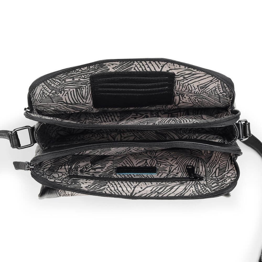 - A trio of compartments: The interior is cleverly divided into three main sections: two secure zipped compartments for your valuables, flanking a central, easy-access slip section. It’s organisation made effortless.