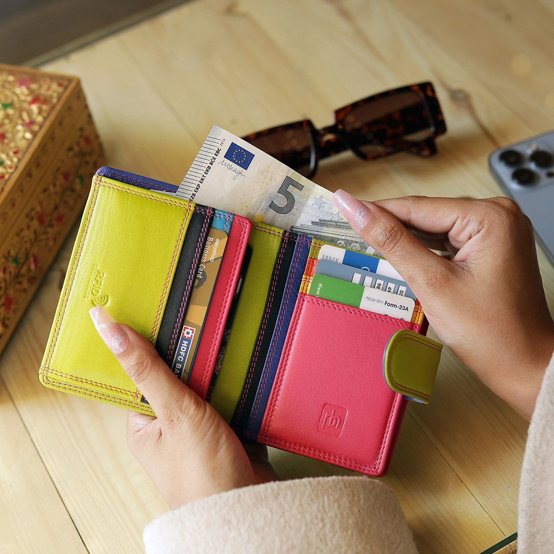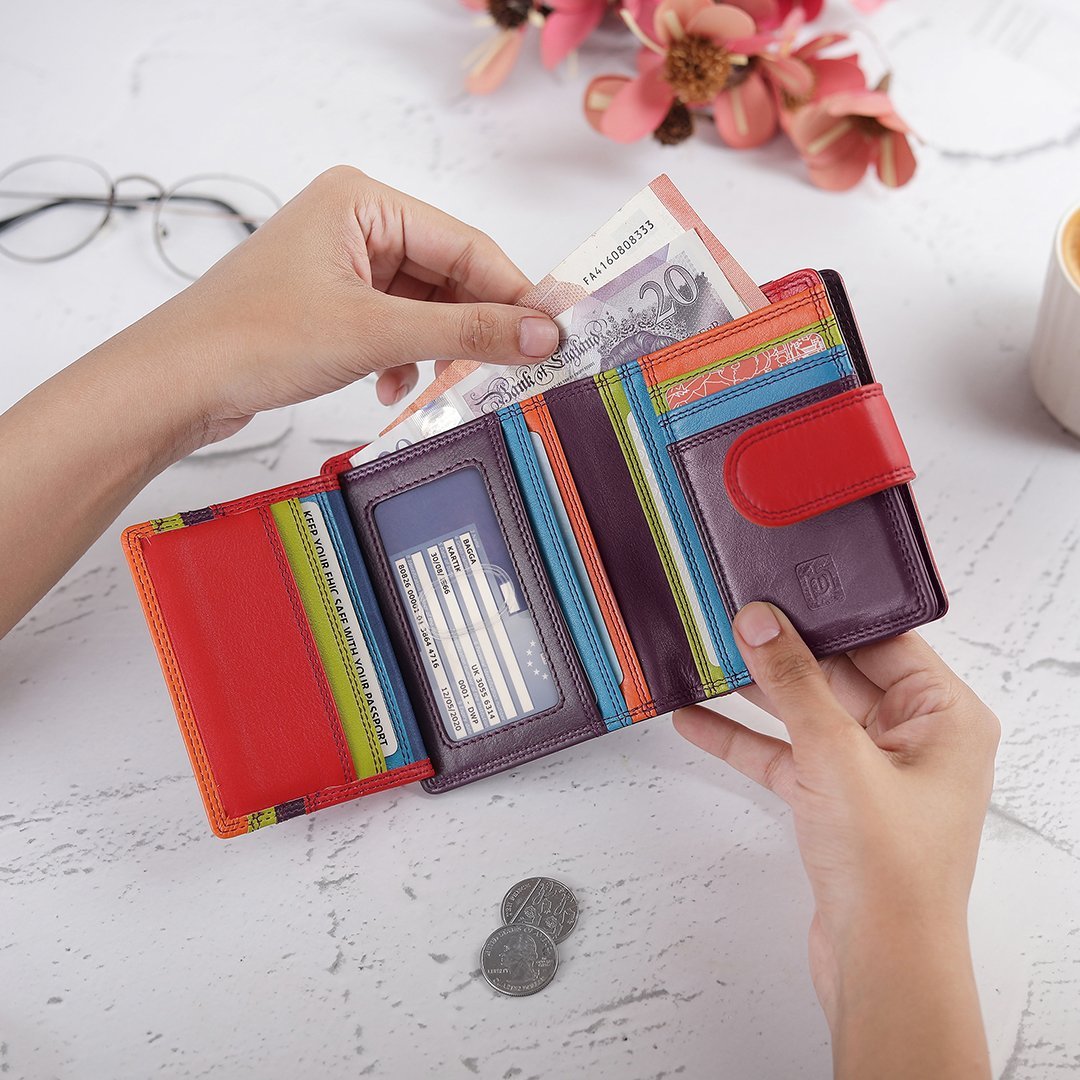 The Soft Leather Colourful Purse – Camellia London is a stylish and functional Trifold Design purse, perfect for everyday use. It features a Secure Tab Fastener and multiple Card Slots to keep essentials organized, along with an ID Window and Note Compartments for added convenience. The purse also includes a Zipped Coin Pocket, making it both practical and elegant. As a Personalised Gift, it offers a unique touch, making it an ideal and thoughtful present.