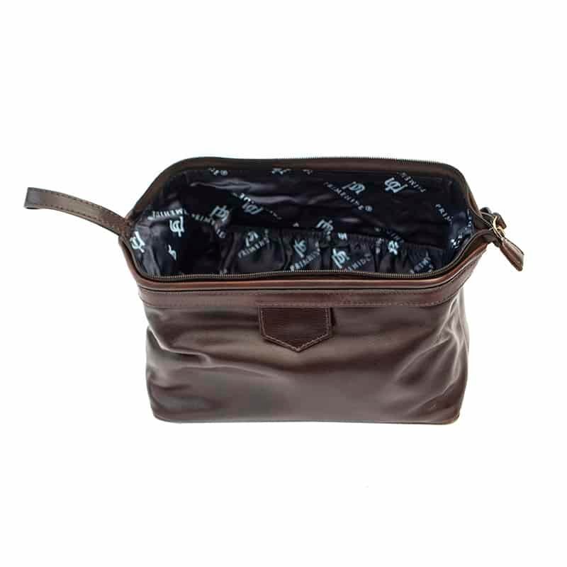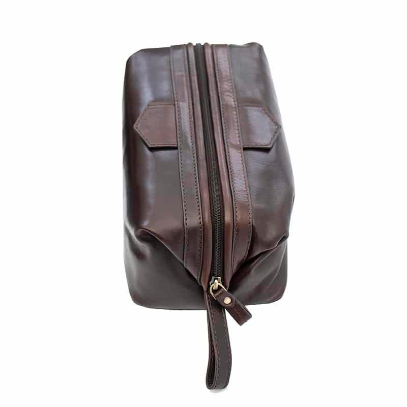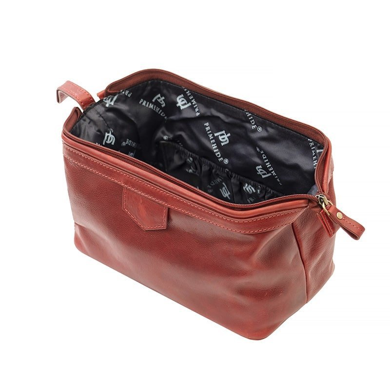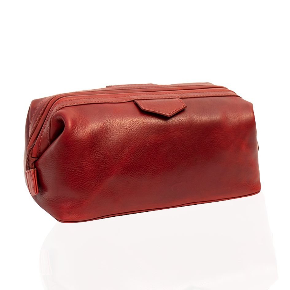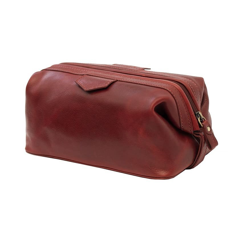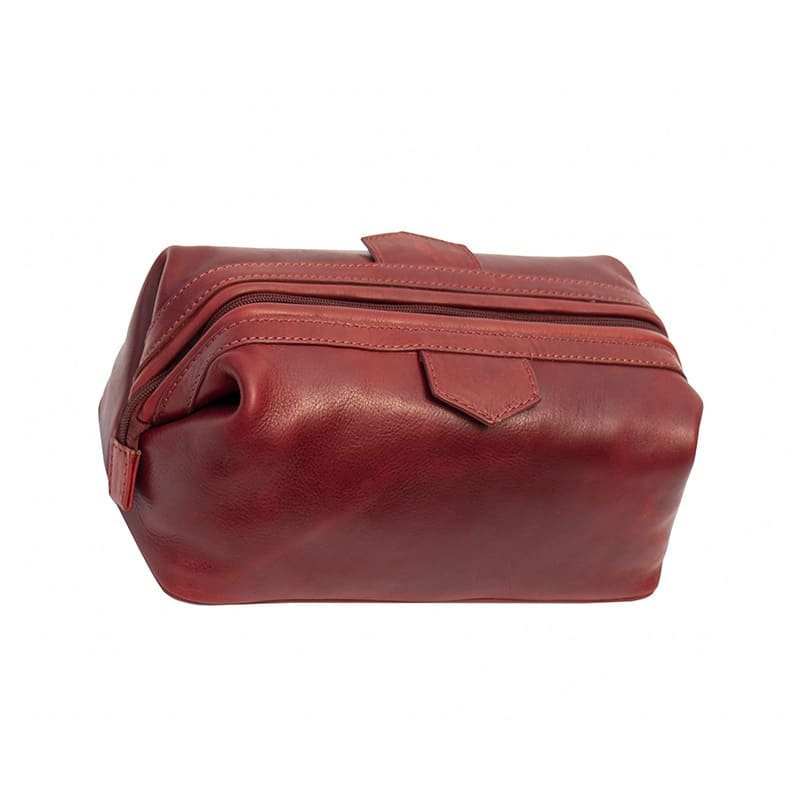 Crafted from premium leather in classic Tuscan style, this wash bag combines elegance with practicality. The structured, hinged zip opening gives easy access, while internal mesh and zipped pockets keep your grooming essentials neatly organised. Complete with a sturdy carry handle, it’s ideal for weekends away or world travel.