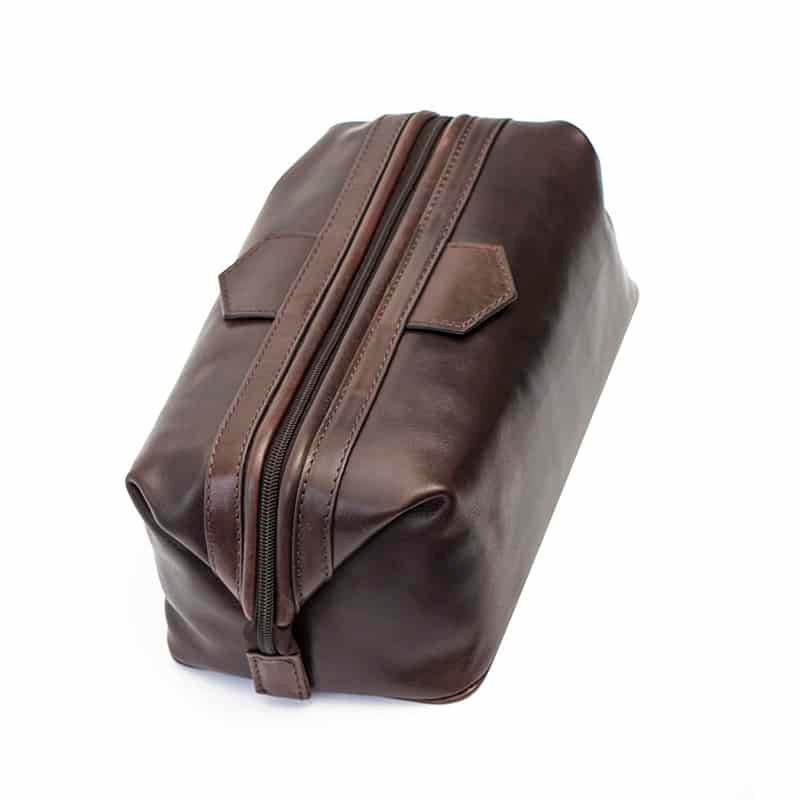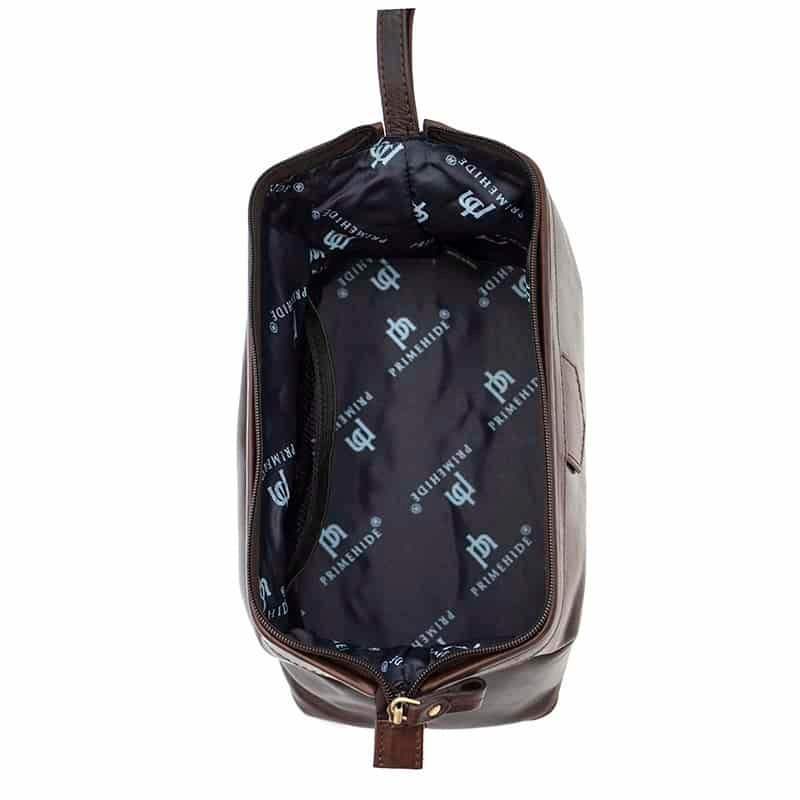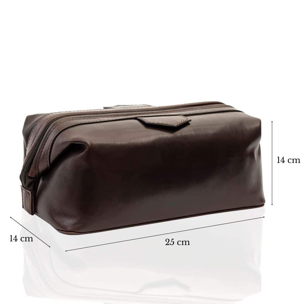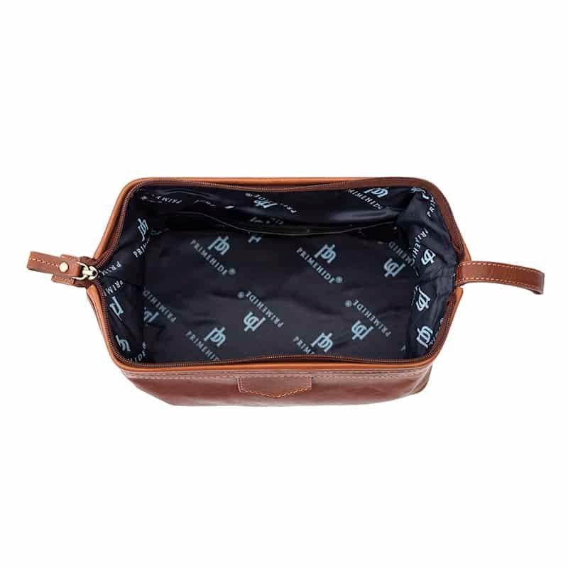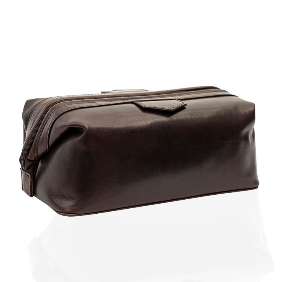 Crafted from premium leather in classic Tuscan style, this wash bag combines elegance with practicality. The structured, hinged zip opening gives easy access, while internal mesh and zipped pockets keep your grooming essentials neatly organised. Complete with a sturdy carry handle, it’s ideal for weekends away or world travel.