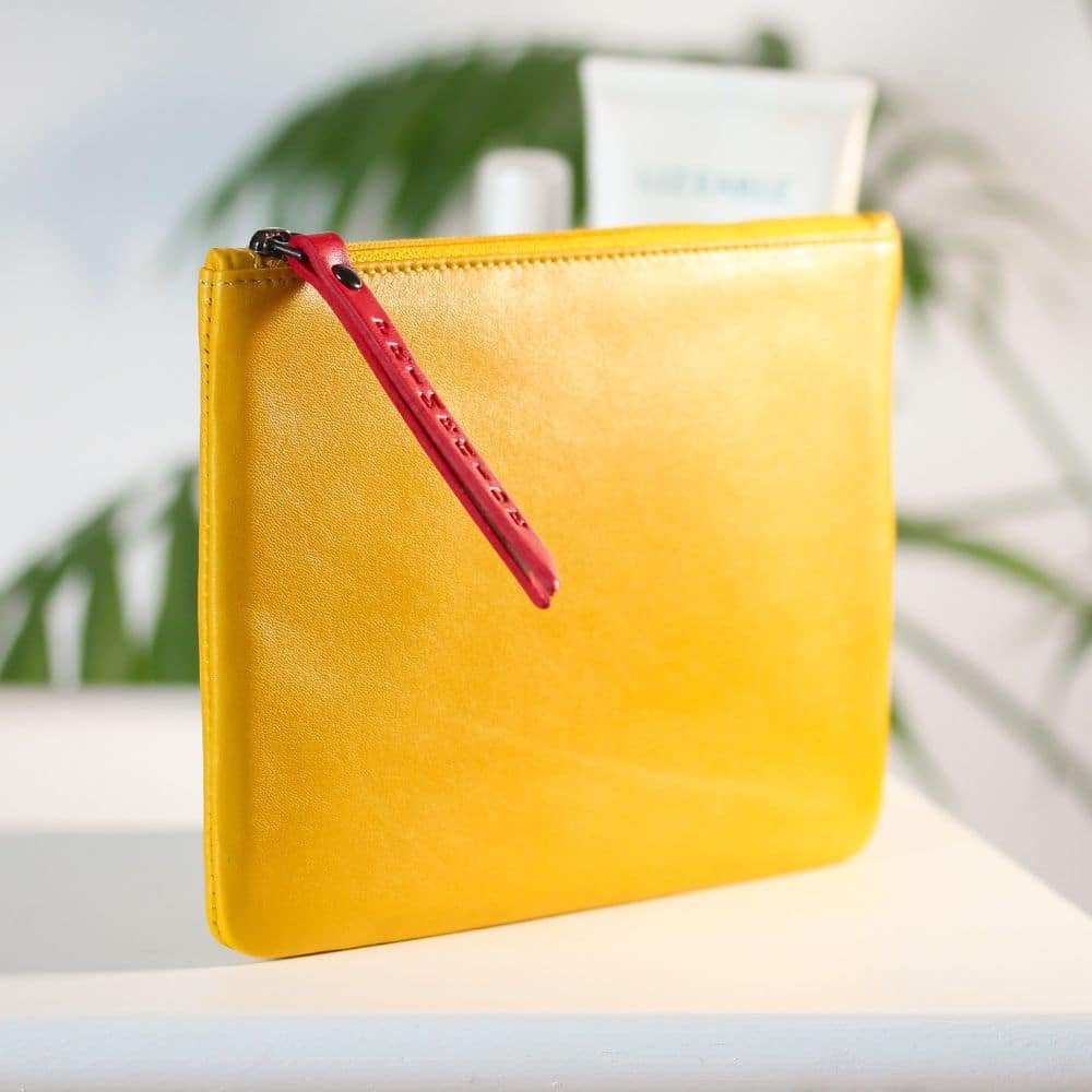 This soft leather makeup pouch is crafted from genuine leather and designed to keep your everyday beauty essentials neatly organised. Compact yet practical, it features a smooth zip-top opening with a leather puller for easy access. The slim profile makes it ideal for slipping into your handbag, travel case or overnight bag without adding bulk.