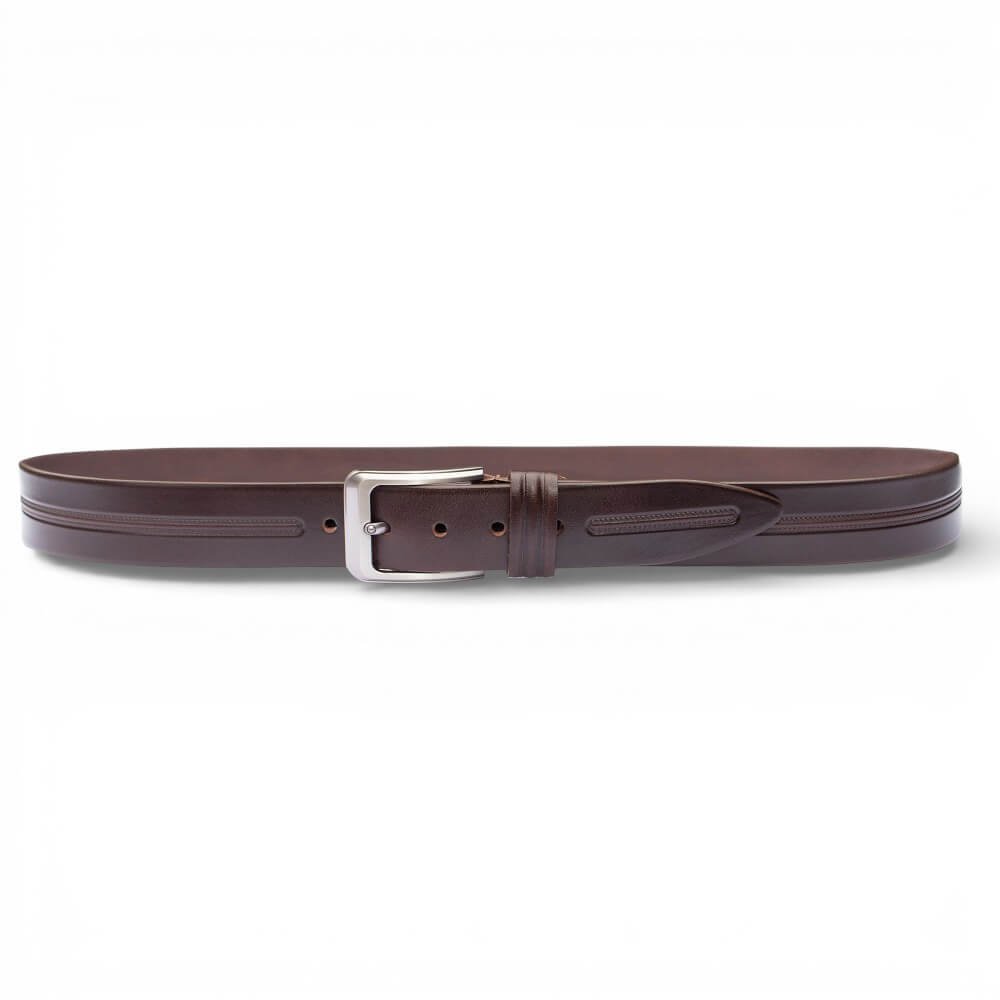 A dependable brown leather belt that brings together comfort, durability, and timeless style.