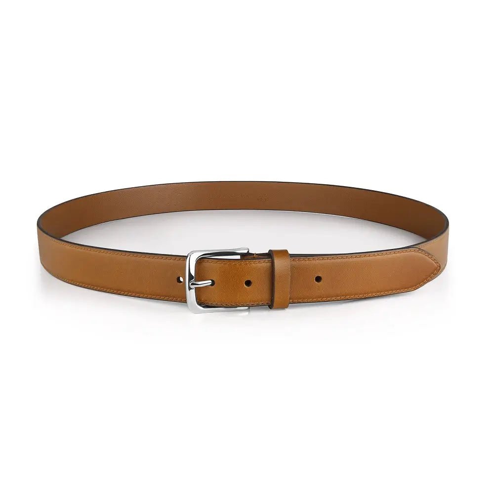 Men’s Tan Leather Belt – Silver Nickel Buckle