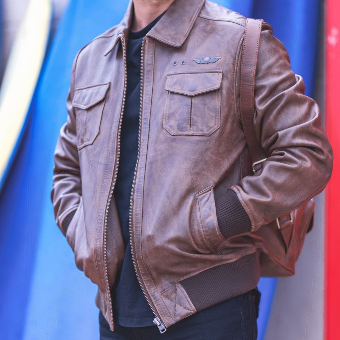 Men’s Brown Aviator Leather Jacket – Airborn