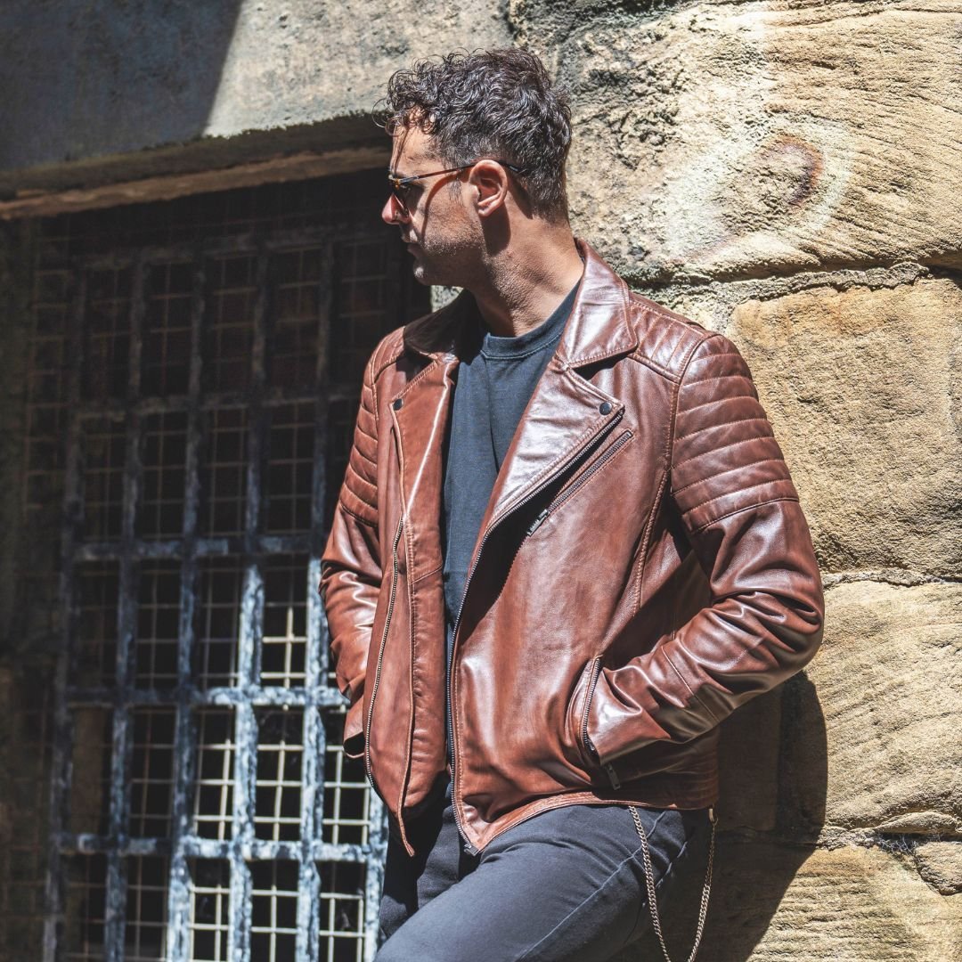 Biker Leather Jacket Albert Cognac