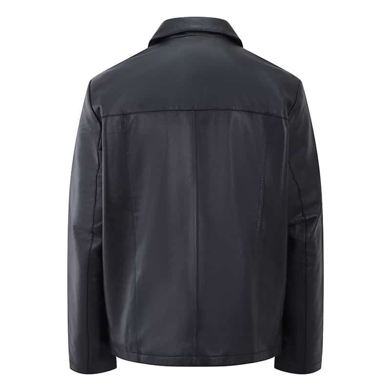 The Henry in black is the kind of jacket that works year after year. The soft sheepskin leather has that smooth, understated finish that feels instantly comfortable, and the shirt-style collar gives it a relaxed, vintage look without tipping into costume. The fit is clean and simple, shaped enough to look put together but easy enough to wear every day.