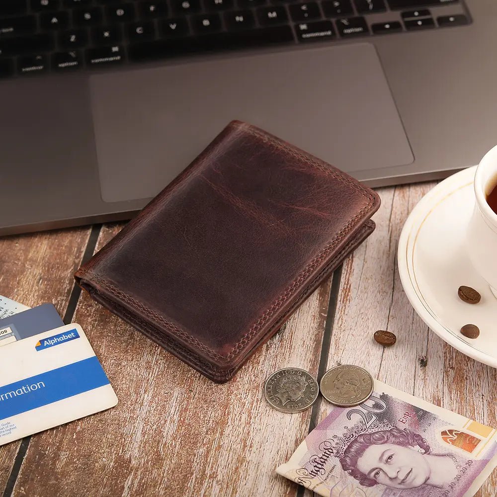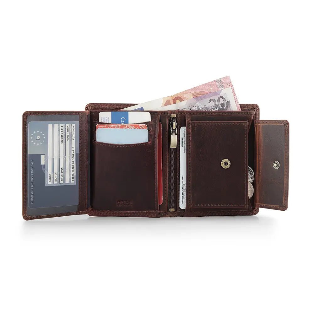 Designed with RFID-blocking technology, it keeps your cards safe from digital theft, offering enhanced security for peace of mind. The trifold design maximises storage without adding bulk, making it ideal for those who value both form and function.