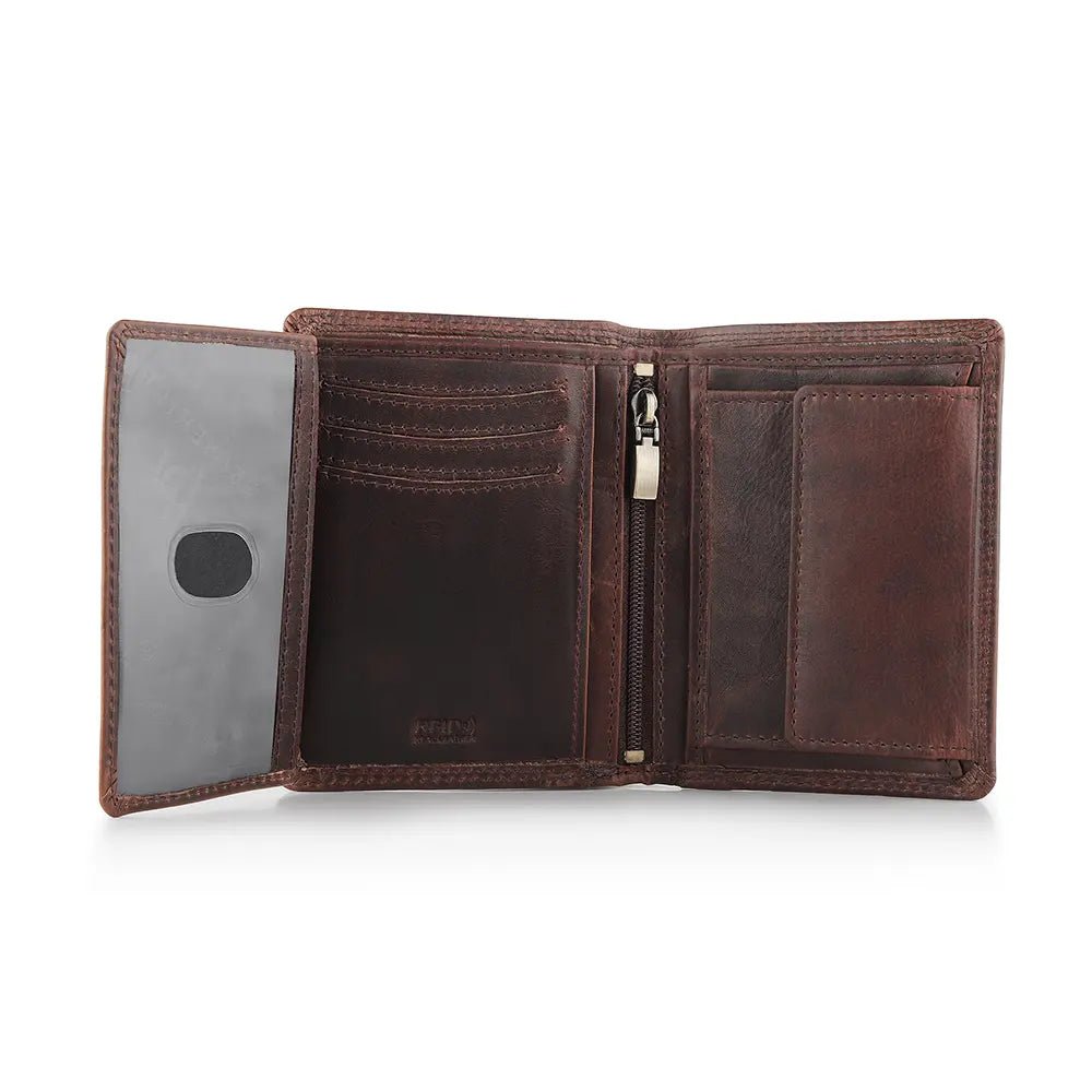 Upgrade your accessories with the Manhattan New York Brown Leather Trifold Wallet – where timeless elegance meets modern security.
