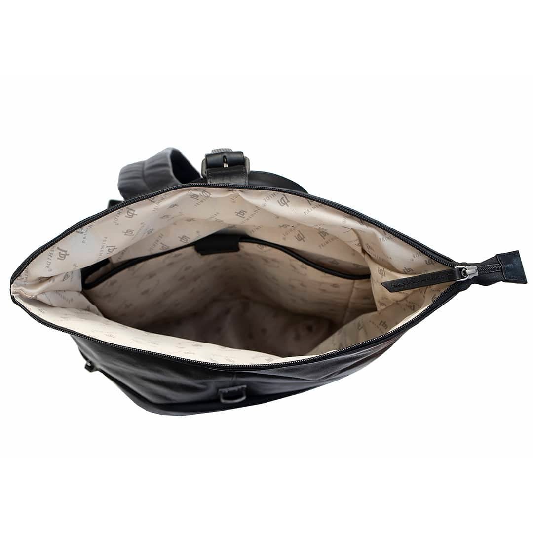 The Orion Leather Backpack is crafted from premium Vegetable-Tanned Leather, designed for both style and practicality. It features a Top Grab Handle and Front Zipped Pocket for easy access, along with Adjustable Leather Back Straps for comfortable wear. The Roll Top design with a zip opening and Tuck Lock Fastening ensures secure closure, while the Soft Breathable Back Panel adds comfort. The PRIMEHIDE Leather Logo Branding adds a signature touch.