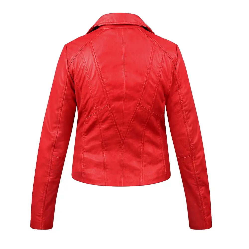 Women’s Red Leather Asymmetric Biker Jacket – Yvonne