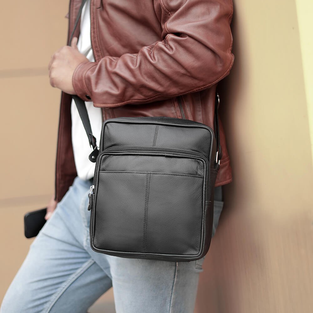 Looking for a stylish and practical man bag? Look no further than the Leather Upcycled Crossbody Bag!