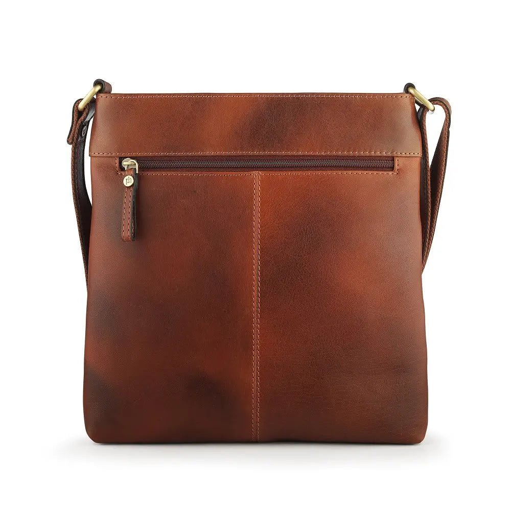 Designed for both style and function, this compact yet spacious crossbody bag features a main zipped compartment, two hidden front zipped compartments, and an additional rear zipped pocket for secure storage. The adjustable shoulder strap ensures a comfortable fit, making it an ideal everyday companion. Complemented by brass-toned hardware, this bag embodies rugged elegance for those who appreciate quality craftsmanship.