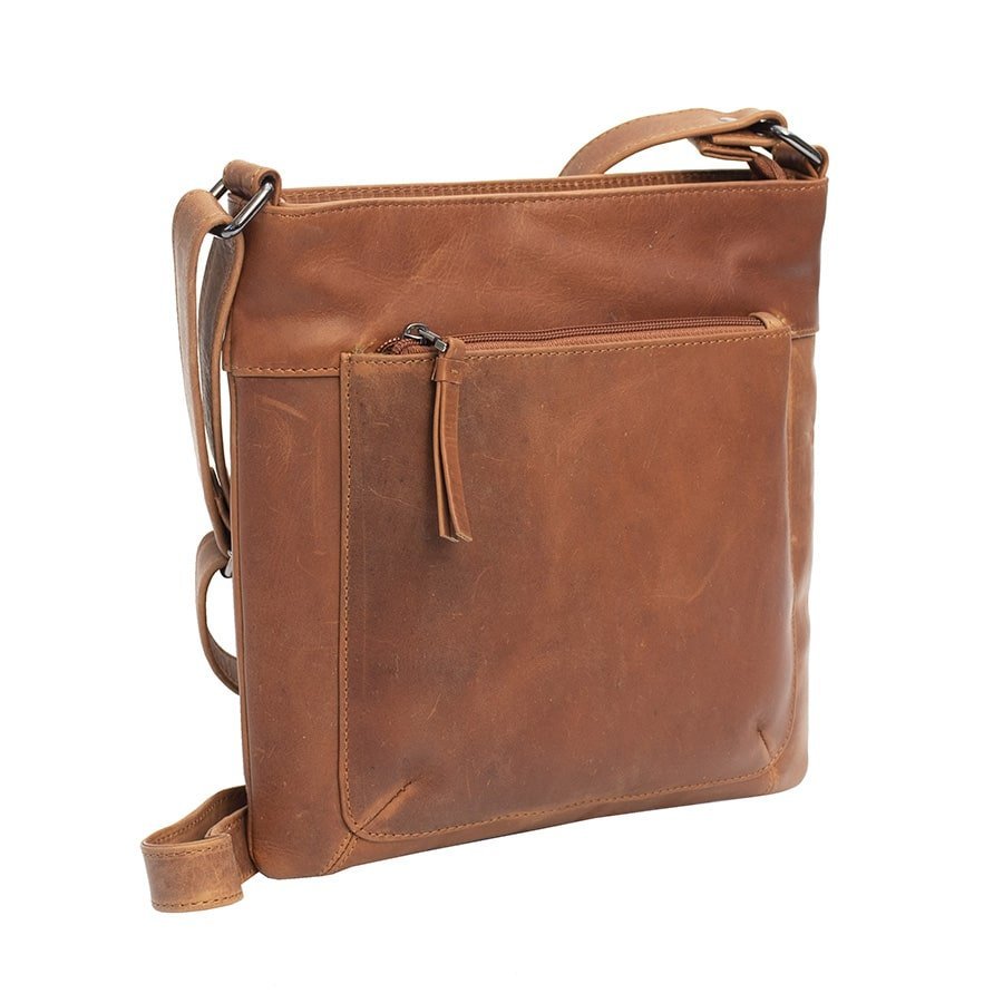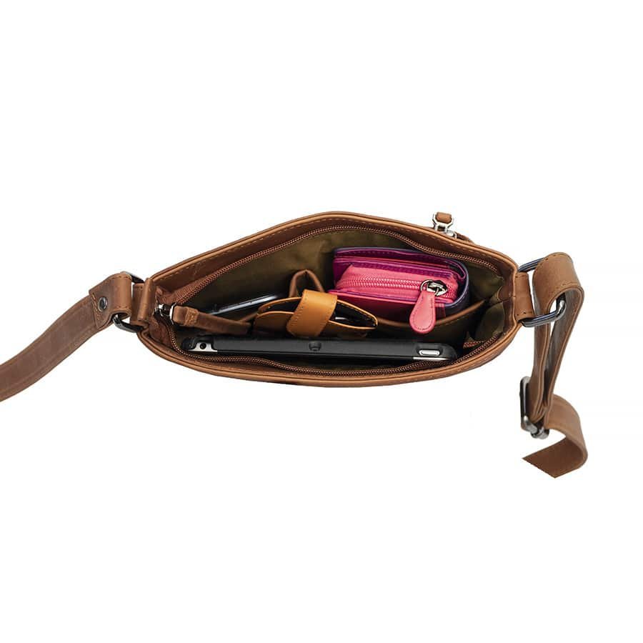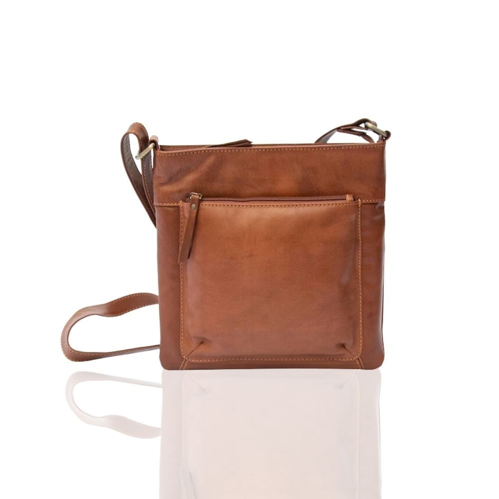This classic Texan Cognac leather crossbody handbag is a must-have for any lady looking for a stylish and practical way to store their essentials.