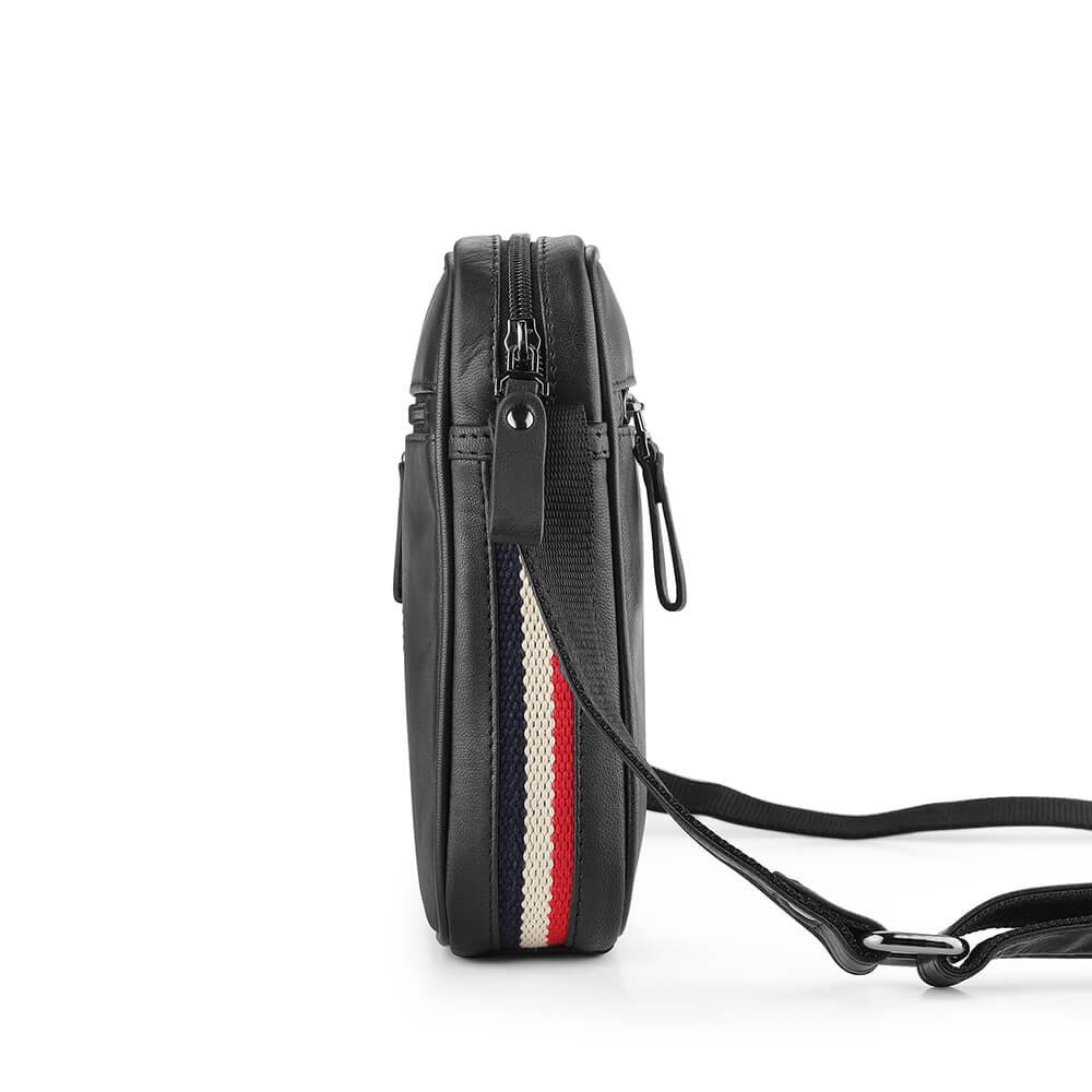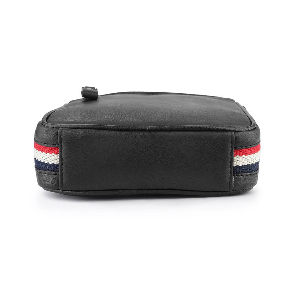 With its stylish red, white and blue stripes down the side, this Navy Texan Small Leather Flight Bag is a modern vibe with classic charm. Plus, it measures 15.5 x 20 x 4.5 cm, making it easy to take on all your adventures. Get ready to look sharp and feel confident when you carry it.