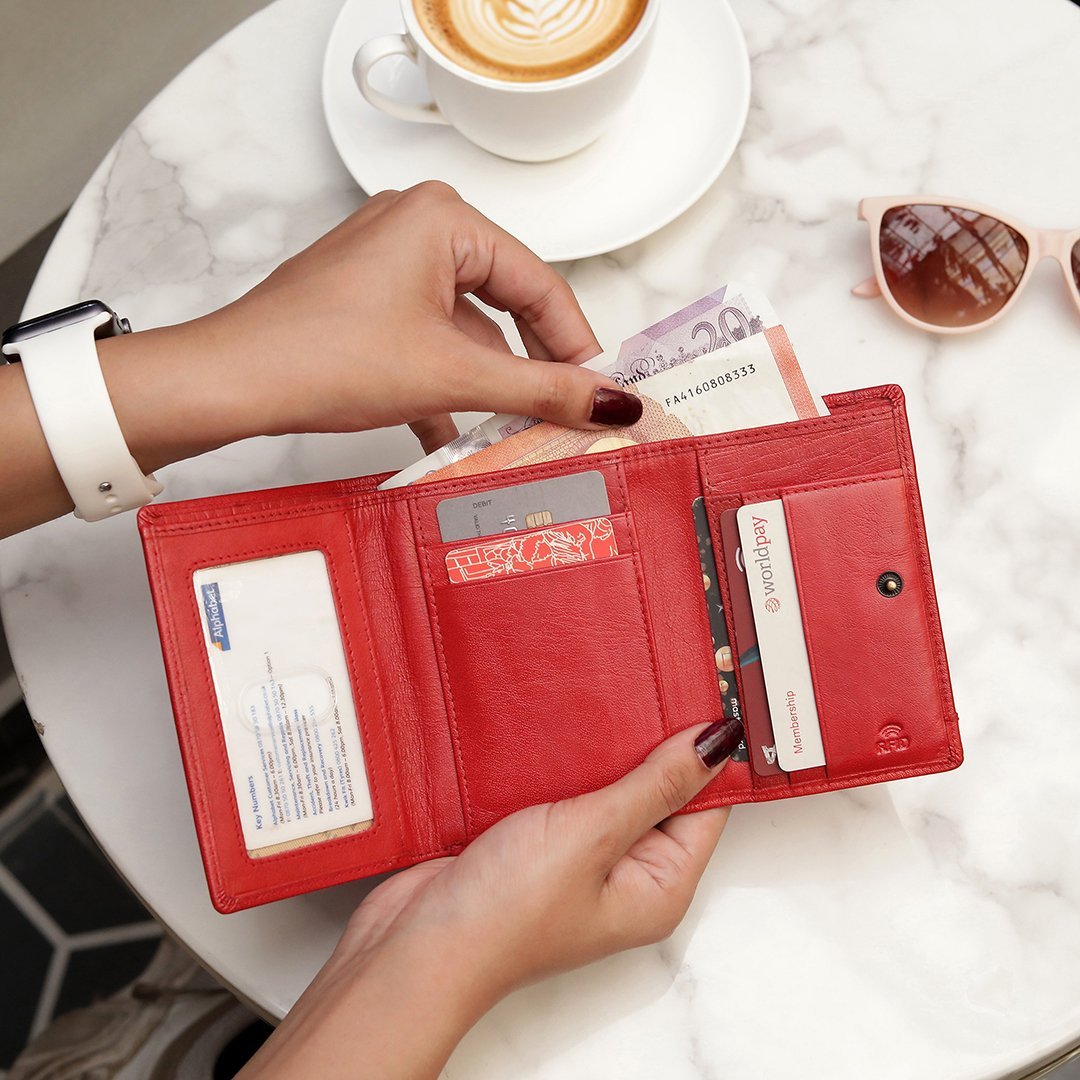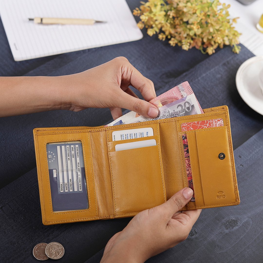 The Velura Clip Frame Trifold Purse is a sophisticated Genuine Leather wallet designed with RFID security to protect your cards. This purse features 5 Credit Card Slots, Additional Slip Pockets, an ID Window, and a spacious Note Section. The classic Clip Frame Coin Section adds both elegance and functionality, making this purse a stylish and secure choice for everyday use.