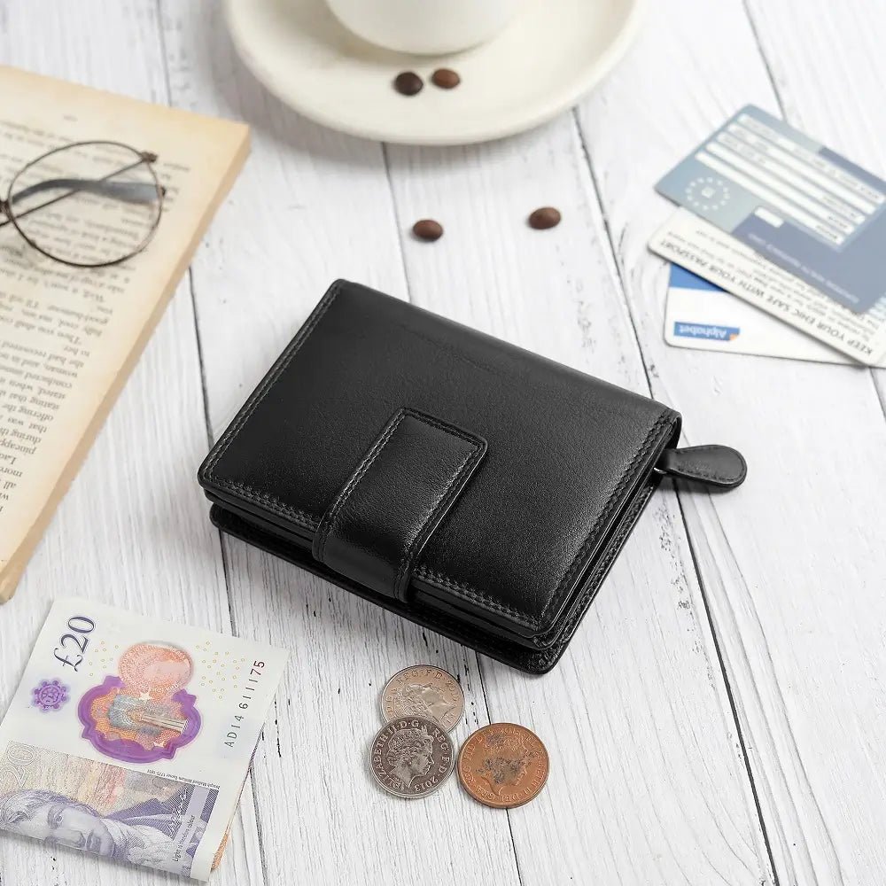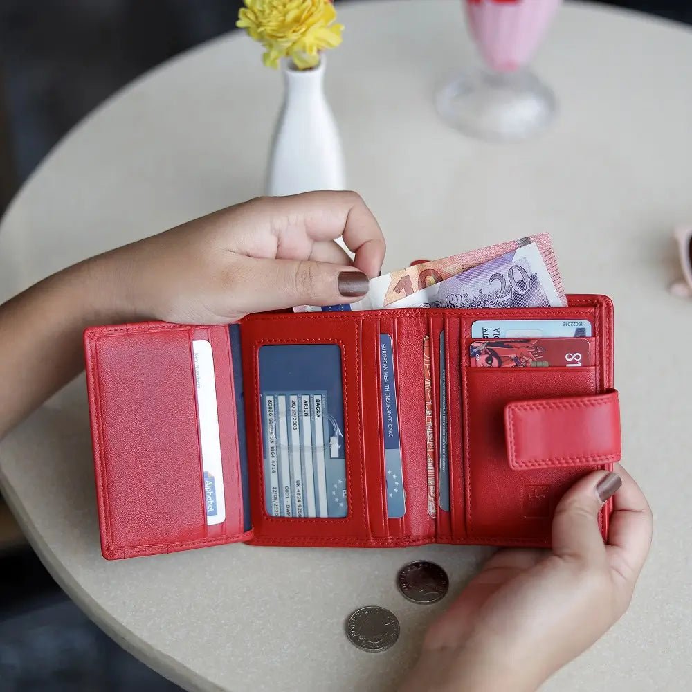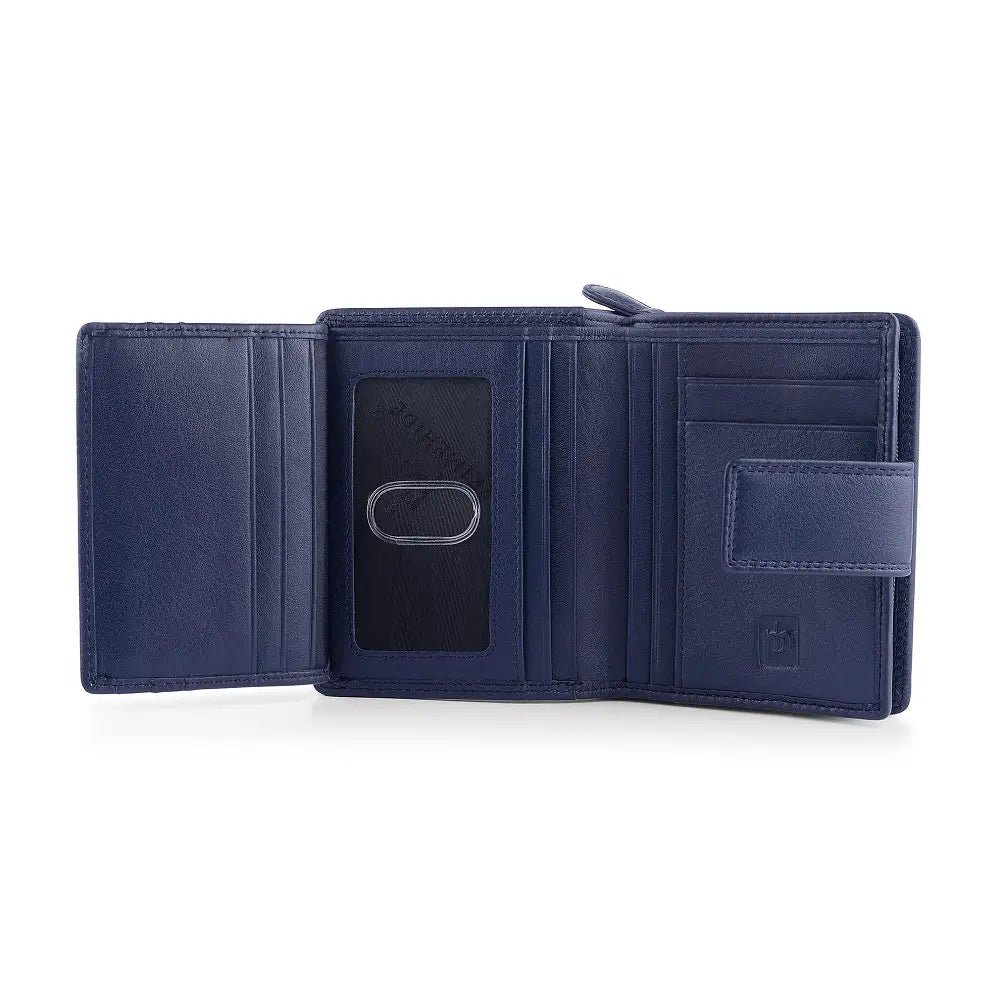 The Soft Leather Purse – Isabella Verona is a stylish and compact Trifold Design purse, crafted with RFID Security to keep your cards safe. Featuring a Secure Tab Fastener, it offers 5 Card Slots, an ID Window, a Note Compartment, and a Large Zipped Coin Pocket for ample storage. Measuring 9 x 11.5 cm, this purse combines elegance with functionality, making it perfect for everyday use.