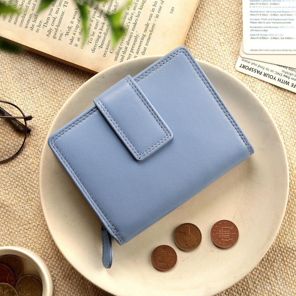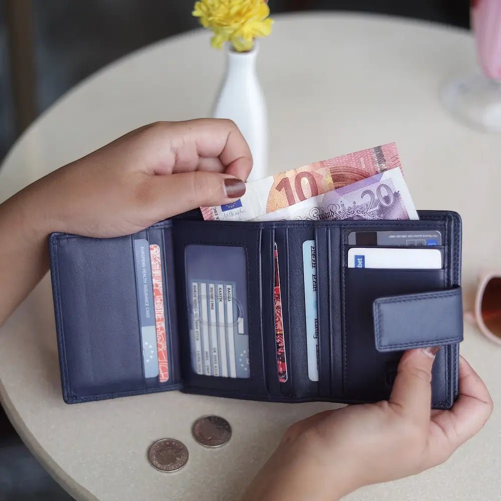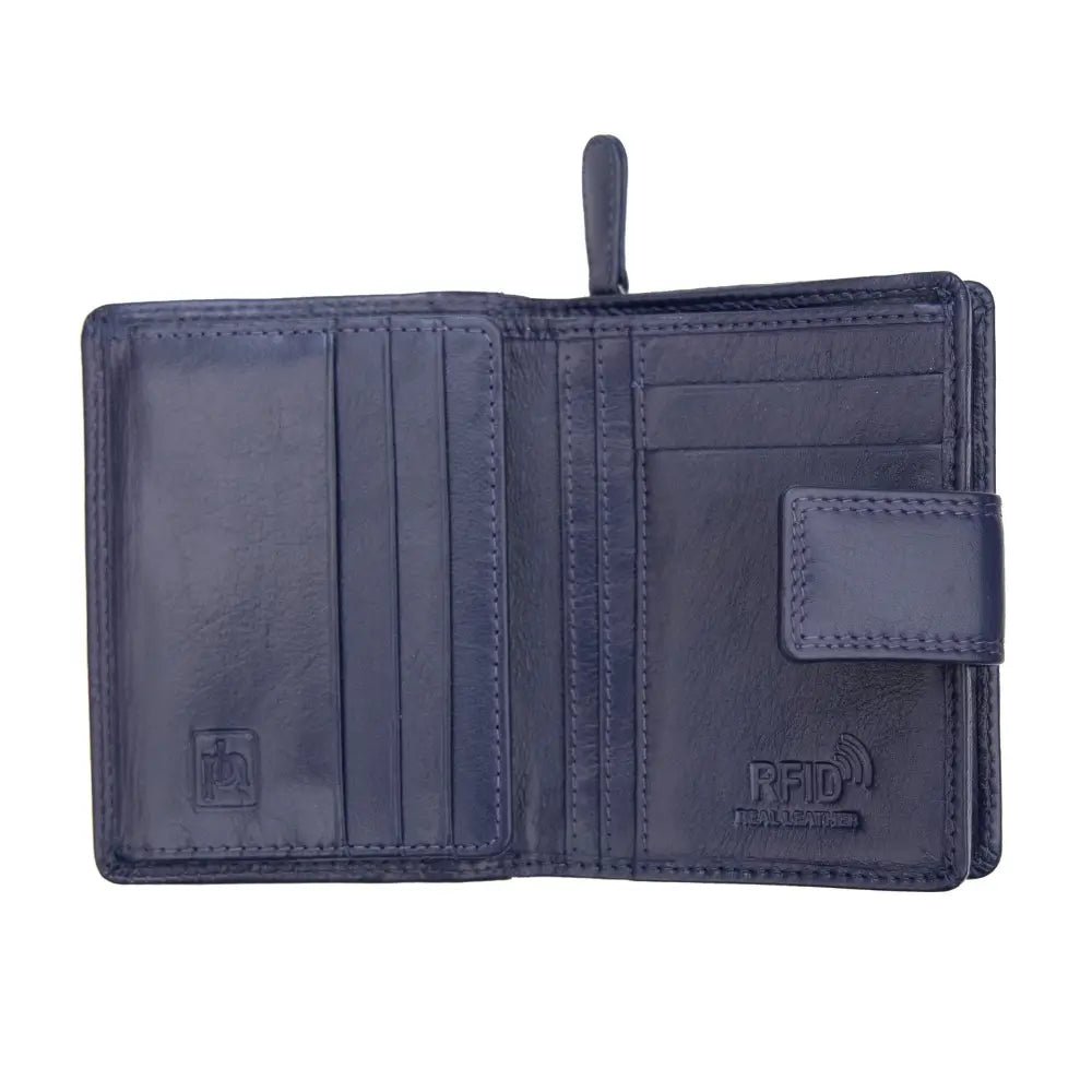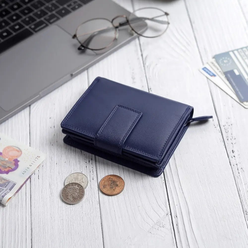 The Soft Leather Purse – Isabella Verona is a stylish and compact Trifold Design purse, crafted with RFID Security to keep your cards safe. Featuring a Secure Tab Fastener, it offers 5 Card Slots, an ID Window, a Note Compartment, and a Large Zipped Coin Pocket for ample storage. Measuring 9 x 11.5 cm, this purse combines elegance with functionality, making it perfect for everyday use.