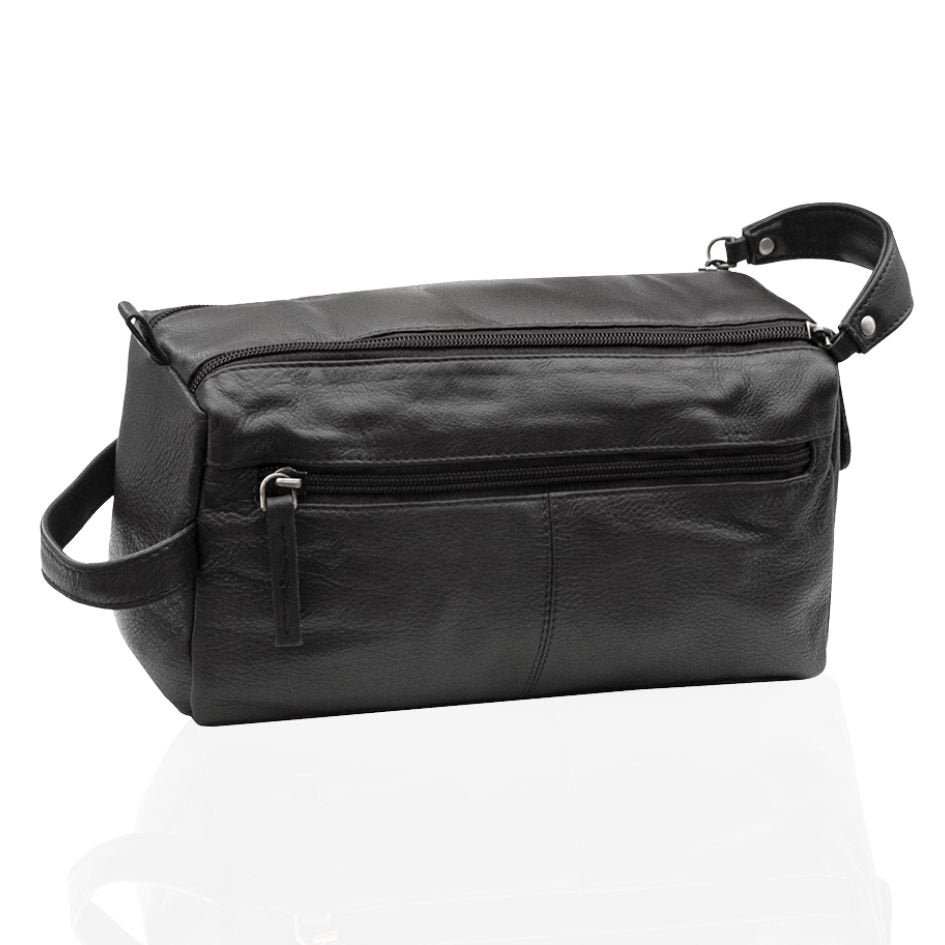 Upgrade his travel essentials with this Leather Wash Bag, crafted from premium genuine leather for a sleek and durable finish. Designed with practicality and style in mind, this wash bag features a front zip pocket for easy access to smaller items and a top double zipper that opens to the spacious main section, perfect for storing toiletries and grooming products.