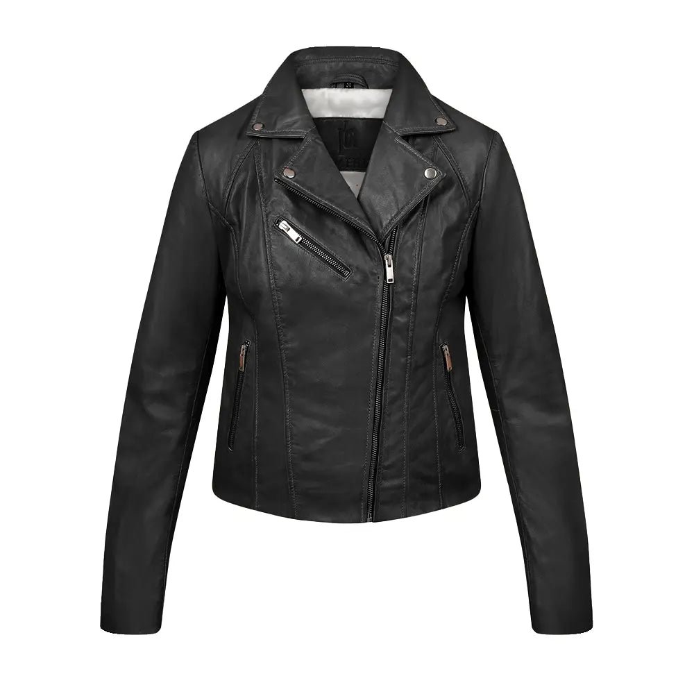 Women’s Black Leather Asymmetric Biker Jacket – Yvonne